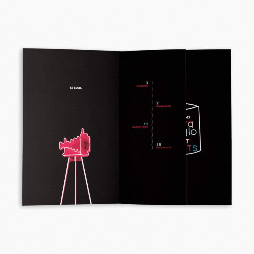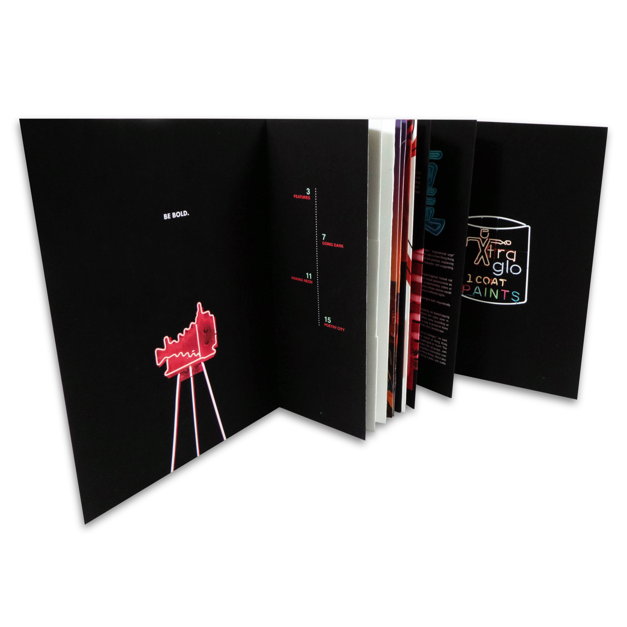 In this particular issue, the spotlight is on the captivating world of neon signage. Vibrant images set against a sleek black backdrop emulate the mesmerizing glow of neon lights. The magazine comes packaged in a simple black box with two glow sticks to secure it in place, adding a touch of intrigue and allure to the overall presentation.